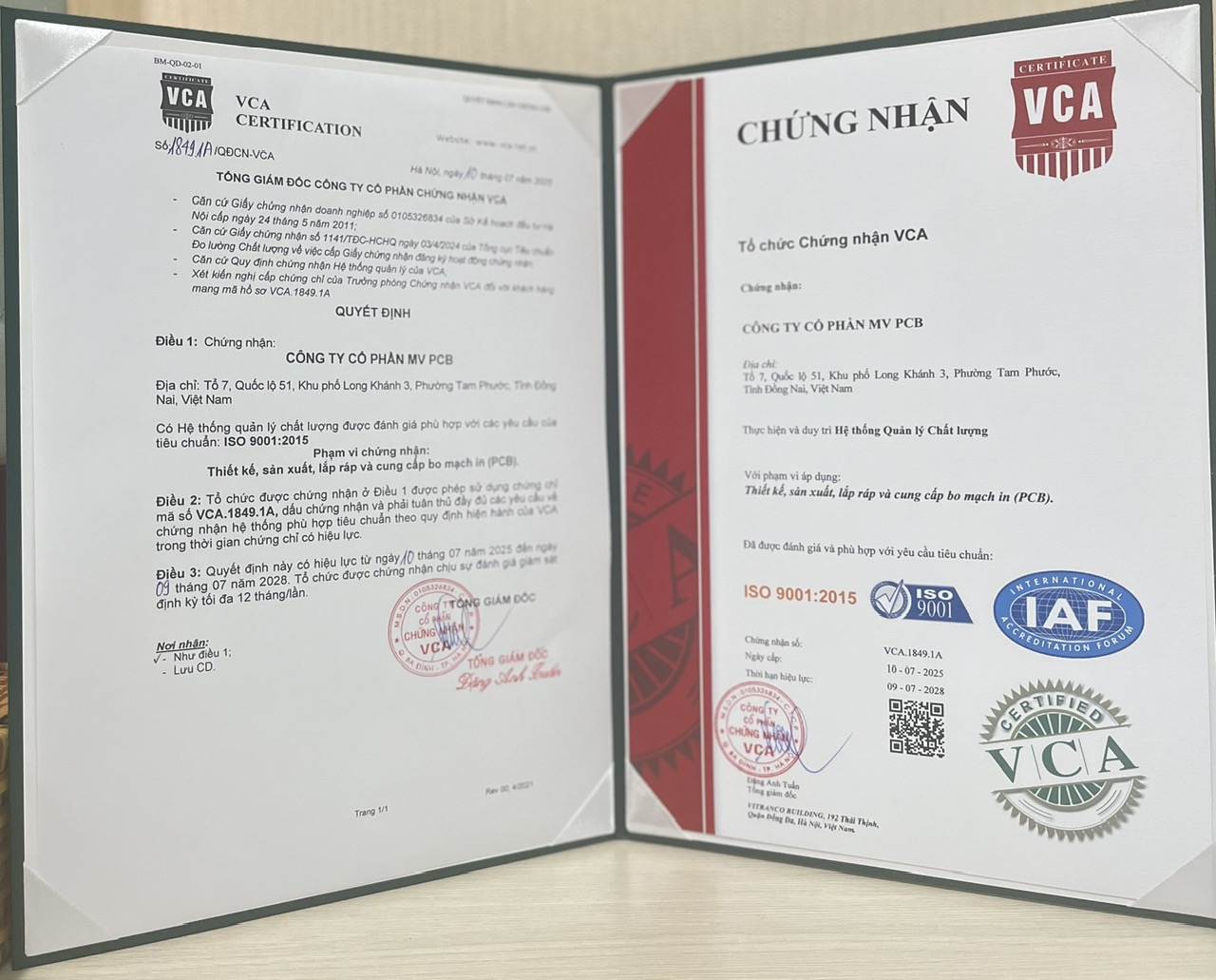 CÁC CHỨNG NHẬN CỦA XƯỞNG SẢN XUẤT PCB